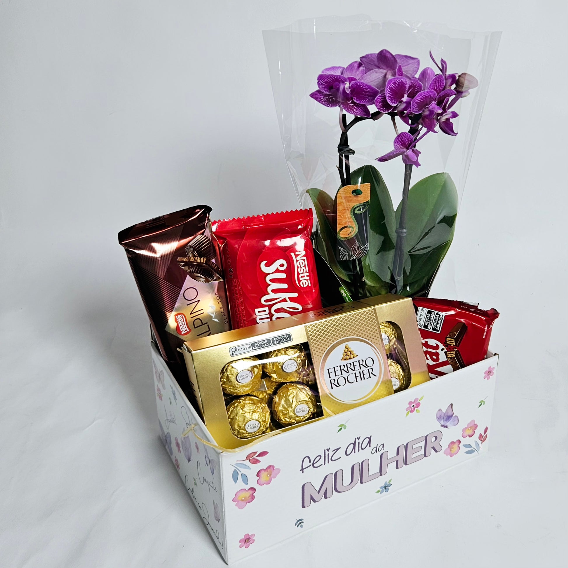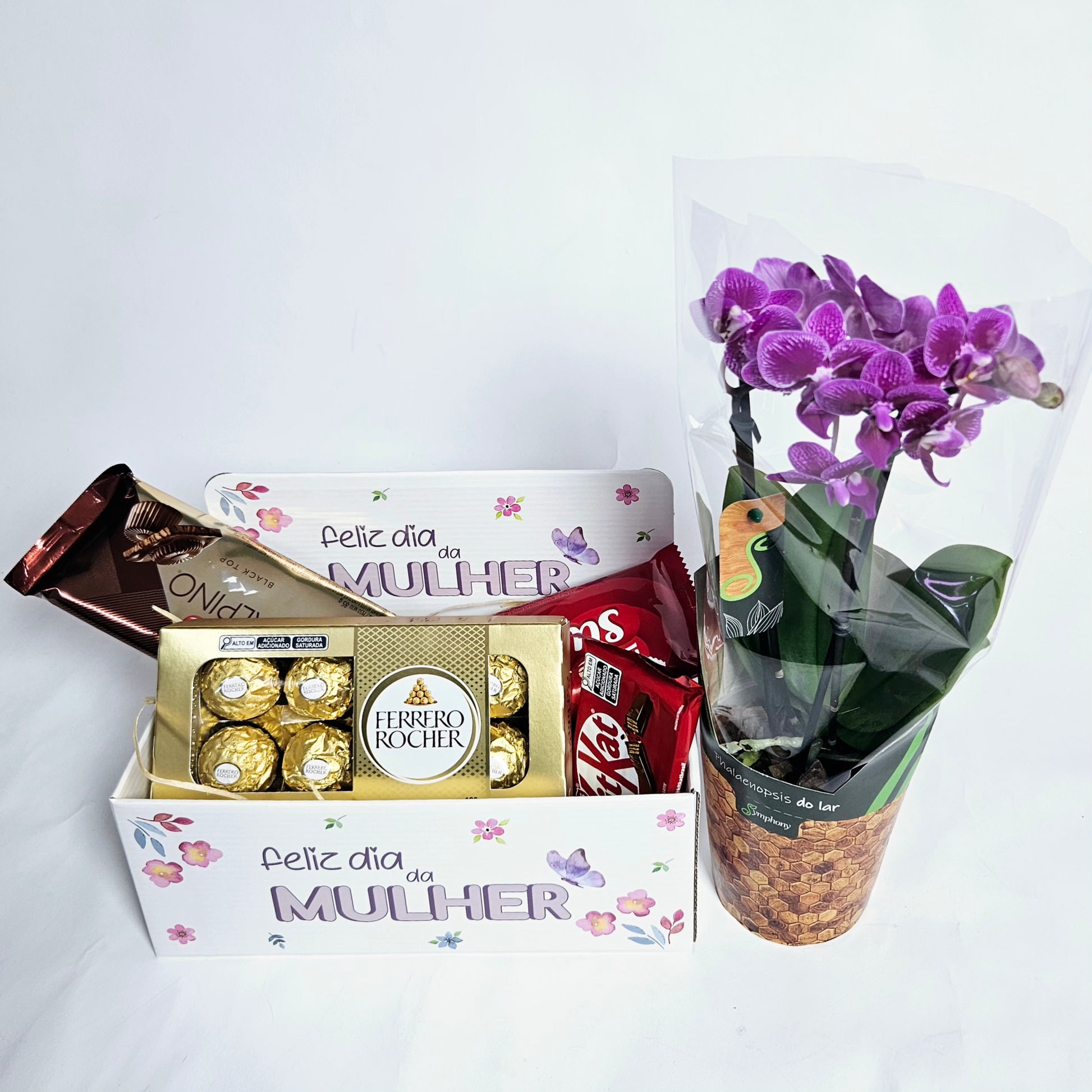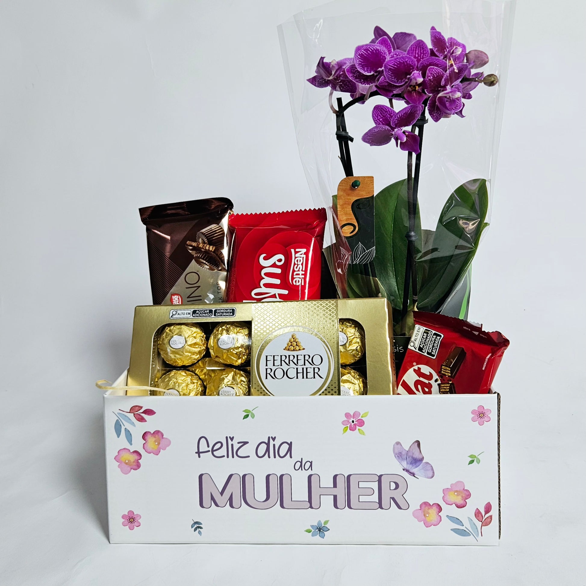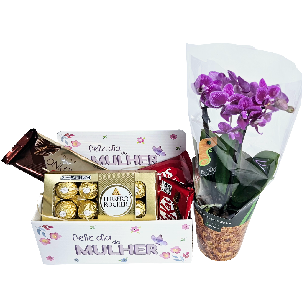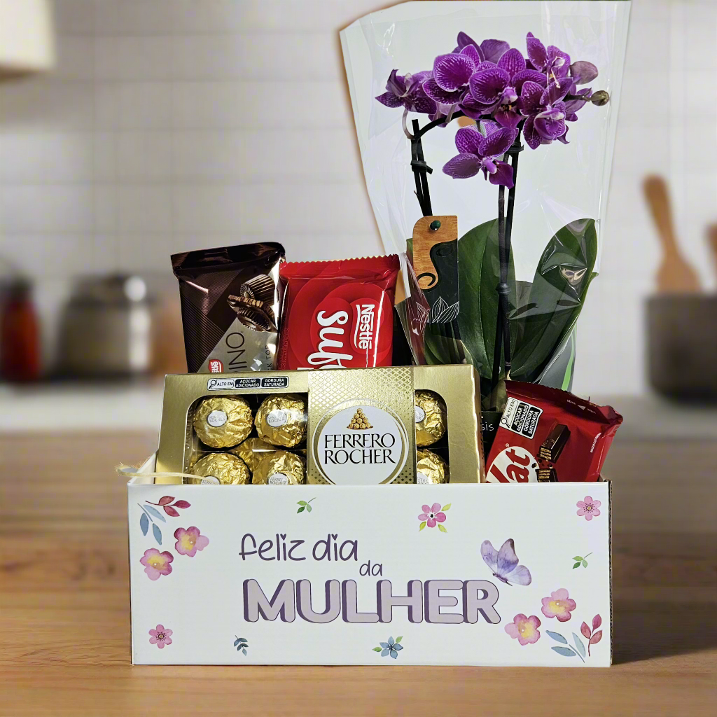 Cesta Feliz Dia da Mulher com Chocolates e Orquídea