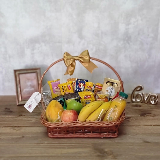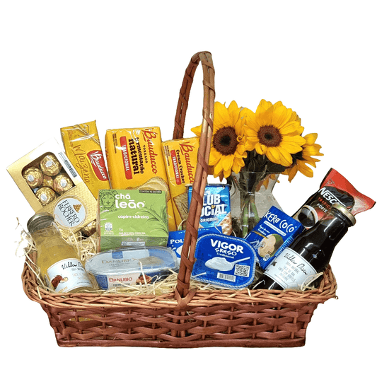 Cesta Café da Manhã Carinho Especial com Arranjo de Flores