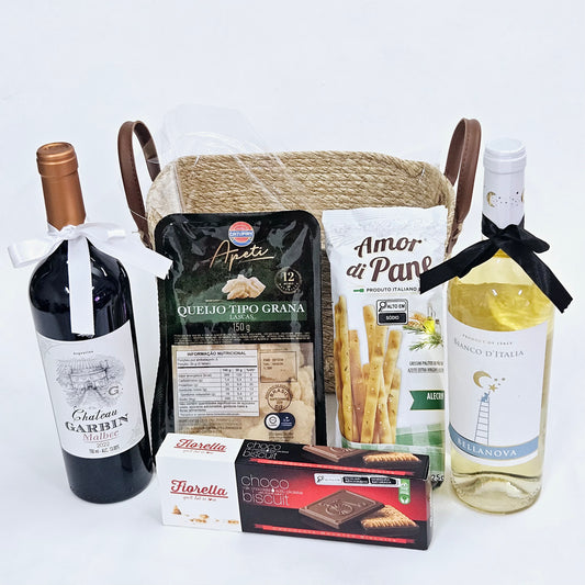 Cesta Presente Gluten Free e Zero Lactose Luxo com Vinho