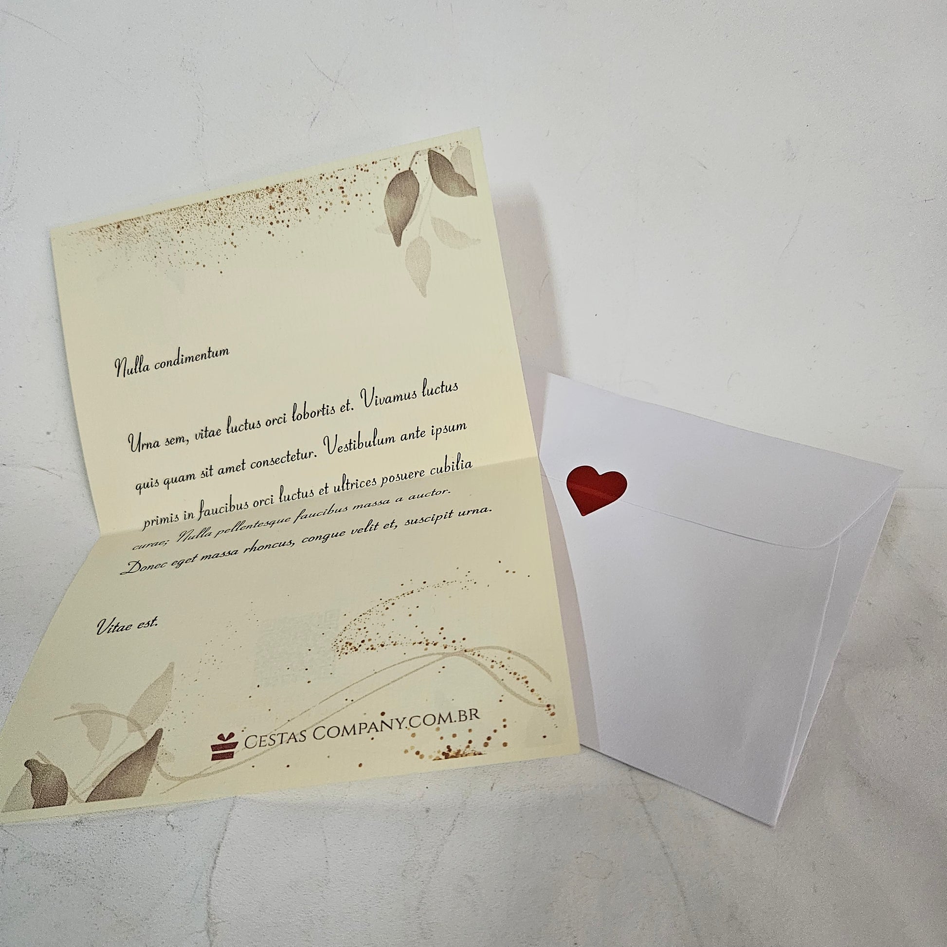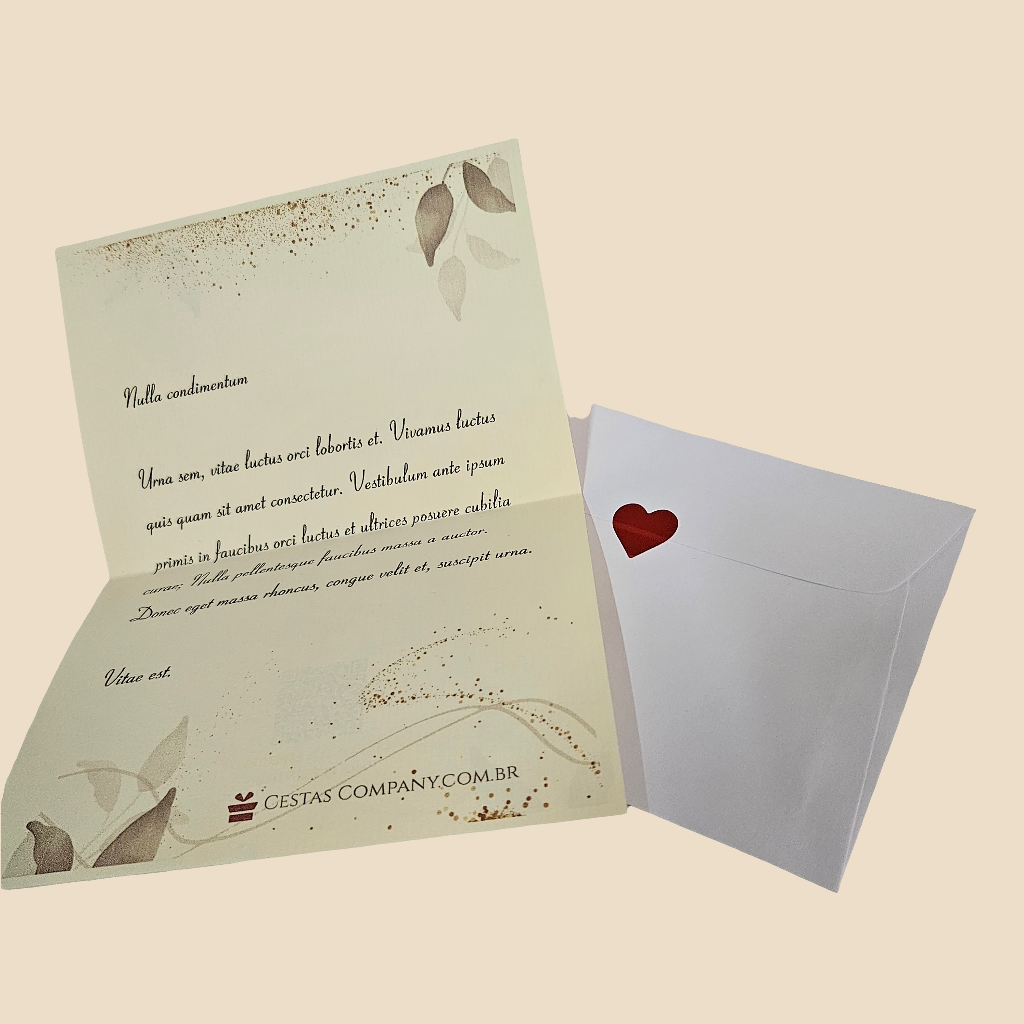Incluir um Cartão de Presente é uma forma de expressar uma mensagem pessoal perfeita para presentear. Escolha o modelo em que iremos imprimir sua mensagem especial!