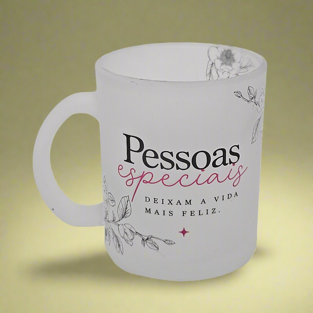 Caneca de Vidro "Pessoas Especiais Deixam a Vida Mais Feliz"