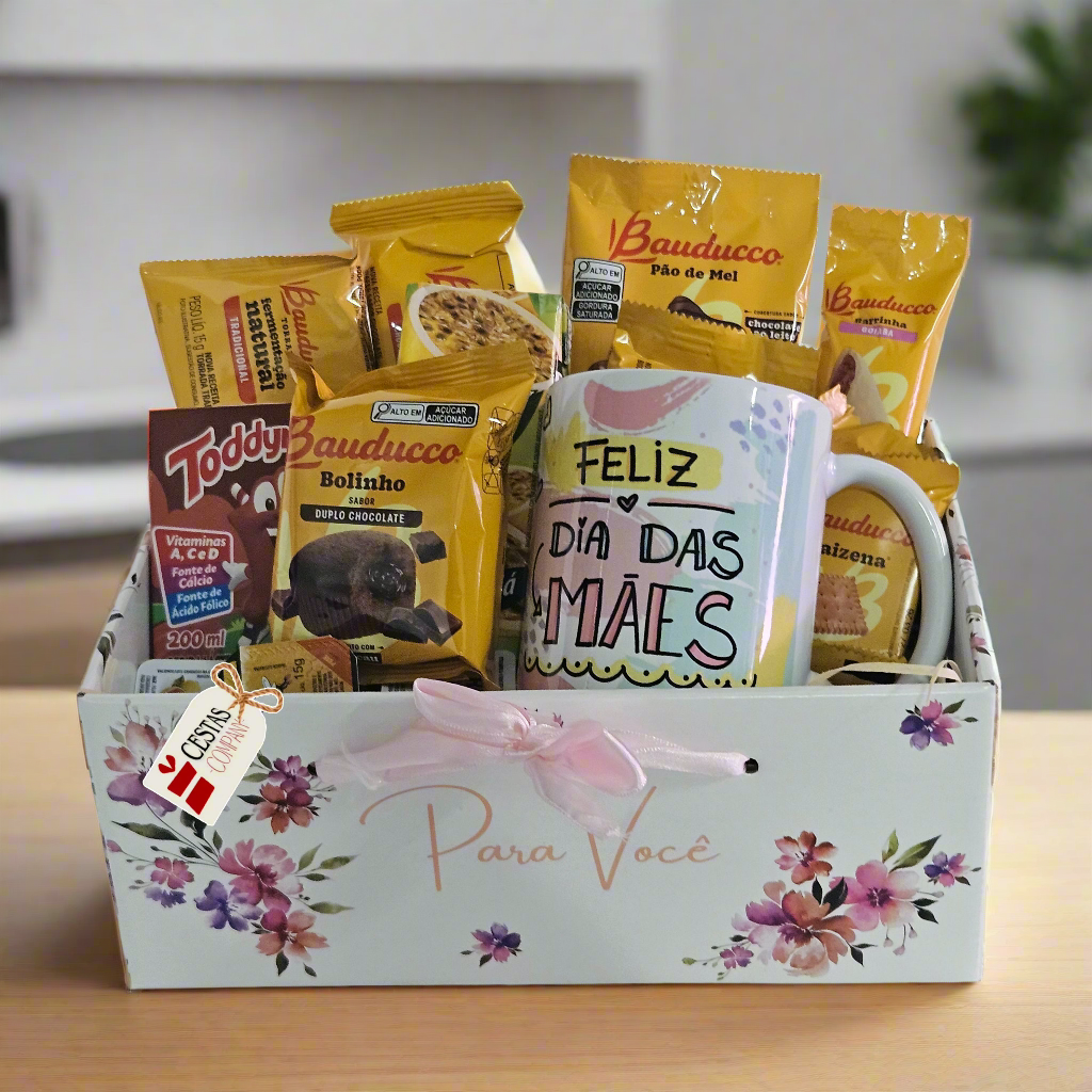 Cesta Café da Manhã com Caneca Feliz Dia das Mães