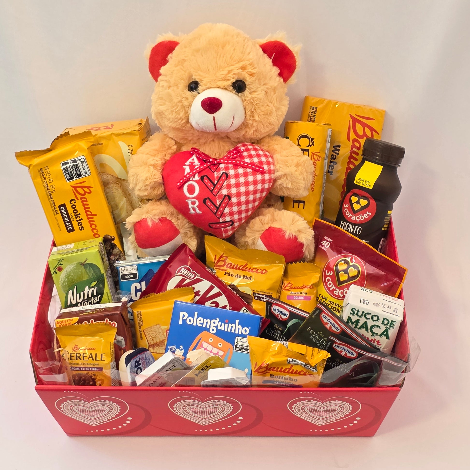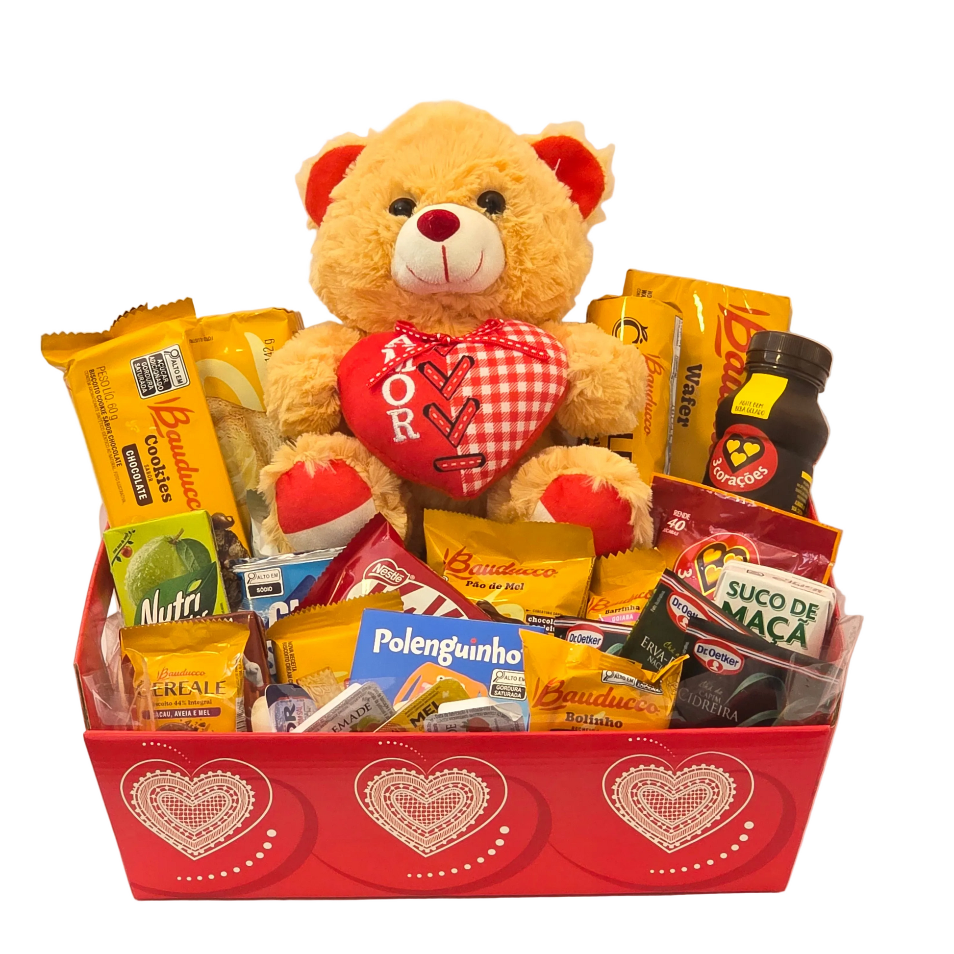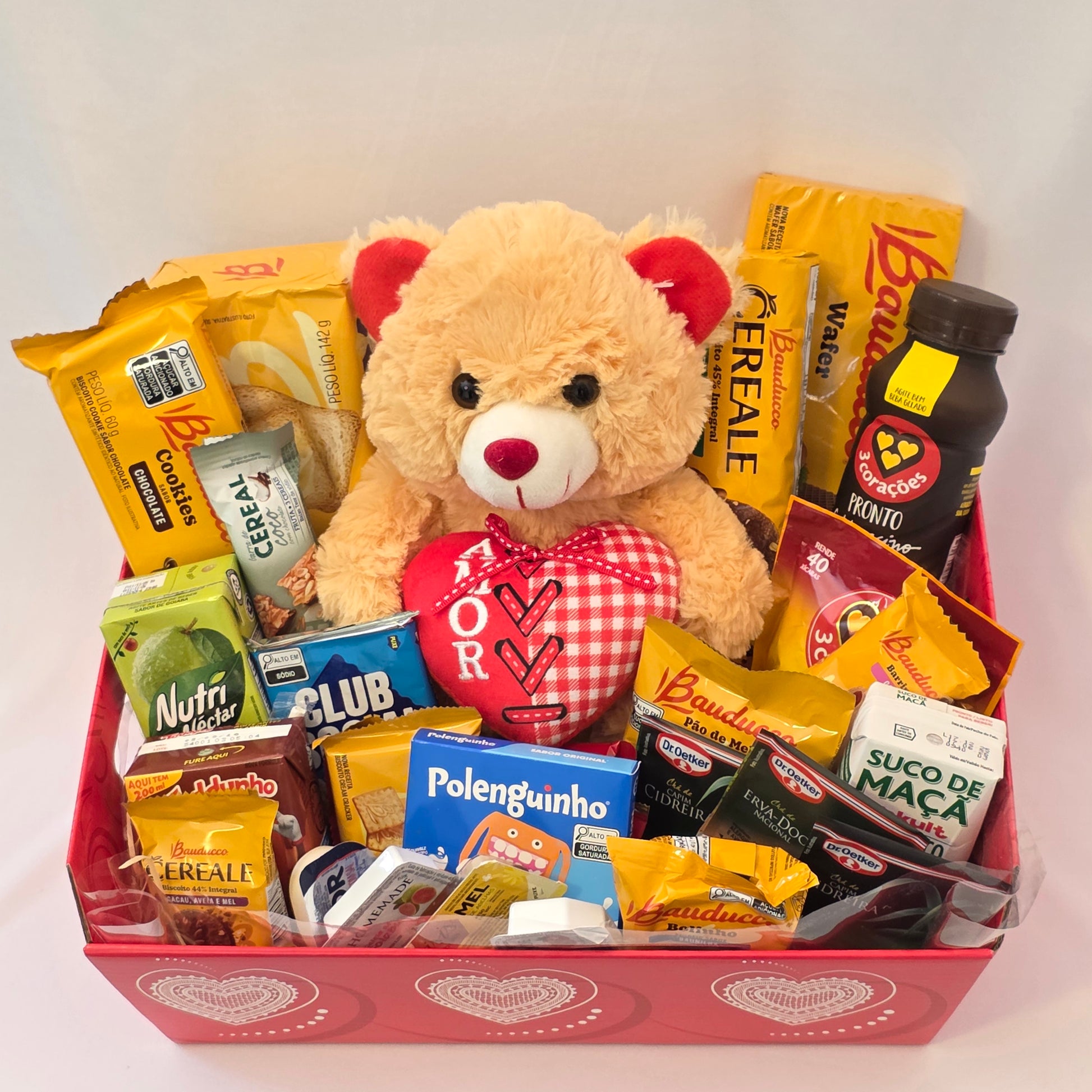Cesta Café da Manhã Romântico com Ursinho Eu te Amo